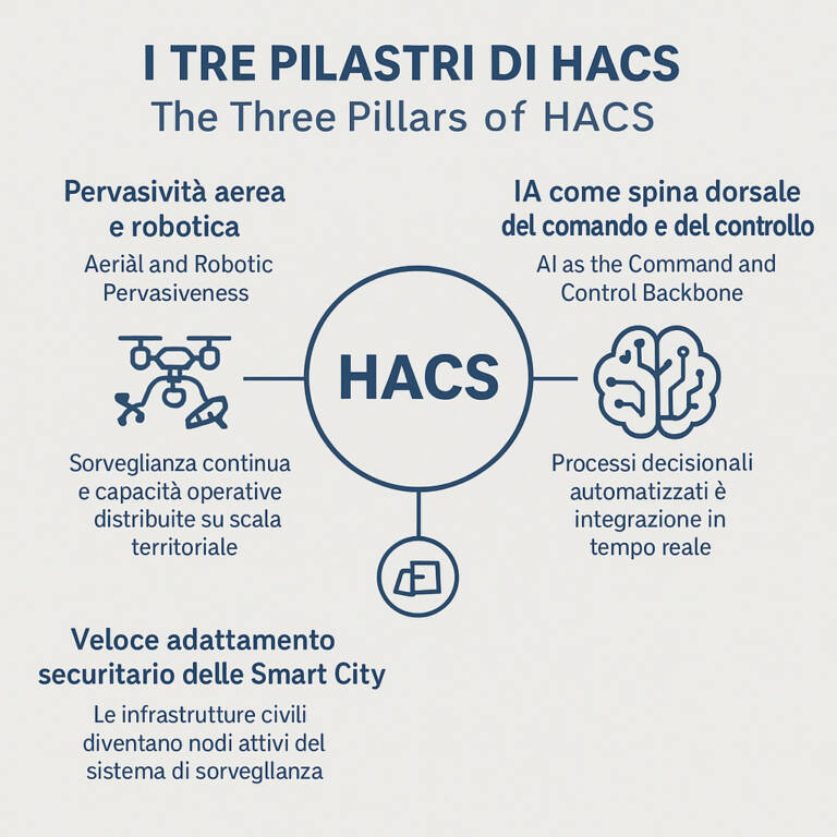 Il modello di controllo dell’ordine pubblico destinato a Gaza si proietta come un sistema ibrido di controllo automatizzato (HACS), basato su tre pilastri. Il primo è la pervasività aerea e robotica: i droni militari sarebbero riassegnati a compiti di pattugliamento urbano, mentre la robotica terrestre, sviluppata per il combattimento, sarebbe riconvertita in piattaforme di sicurezza per mantenere una consapevolezza situazionale completa e continua del territorio. Il secondo pilastro è l’IA come spina dorsale del comando e controllo (C4I): l’intelligenza artificiale, derivata da sistemi di targeting letale, verrebbe riconvertita a strumento di “polizia predittiva”. Utilizzerà i dati biometrici e di movimento per profilare gli individui per “livello di rischio” e dirigere le risorse di pattugliamento. Questa metodologia, come dimostrato in altri contesti, tende a produrre discriminazione strutturale e a basarsi su dati distorti, consolidando un regime di controllo preventivo che limita drasticamente lo “spazio civico”. Infine, il terzo pilastro è l’adattamento delle soluzioni “Smart City”: la rapida crescita del settore hi-tech nella regione, spinta dal conflitto, ha visto le start-up reindirizzare piattaforme civili verso l’uso militare. Questa riconversione suggerisce che il modello HACS sarà rivenduto sul mercato globale come un “pacchetto di sicurezza per Smart City” completo, allineandosi alla domanda di sicurezza urbana ad alta tecnologia.