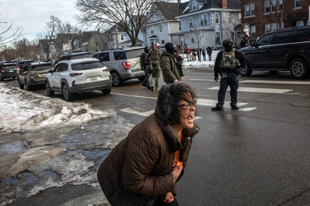 Forse questo è vero in un certo senso spirituale, nella mente dei politici progressisti convinti che, nel profondo del loro cuore, l’ICE non abbia alcuna influenza. Eppure, se si permette che davanti ai propri occhi vengano commesse atrocità e non si intraprendono azioni concrete per fermarle, al di là di un discorso dai toni forti e magari di una o due cause legali poco incisive, non si sta forse cedendo anche nello spirito? Questa menzogna è diventata un ritornello comune tra i politici locali. Lo ha detto il sindaco. Lo ha detto anche il governatore. E, nonostante sia chiaramente “indesiderata”, l’ICE si è sentita a casa propria. I mercenari vagano per le strade. Sfondano le porte delle case, convinti dai loro superiori che non hanno bisogno di un mandato firmato da un giudice. L’ordine è chiaramente illegale, ma questo non sembra più avere molta importanza.10 Le uniche forze che si sono mobilitate contro questa invasione sono state persone comuni, che hanno rischiato la prigione, la mutilazione e la morte per affrontare gli uomini armati inviati a portare i loro vicini nei campi di prigionia. Robuste reti di difesa della comunità si intrecciano nella città ghiacciata, radicate nelle infrastrutture create proprio da quegli instancabili “estremisti di sinistra” che tanto preoccupano il regime. Grazie a queste reti, i mercenari raramente possono muoversi senza essere rintracciati, raramente possono fermarsi senza essere circondati e raramente possono agire senza essere filmati.