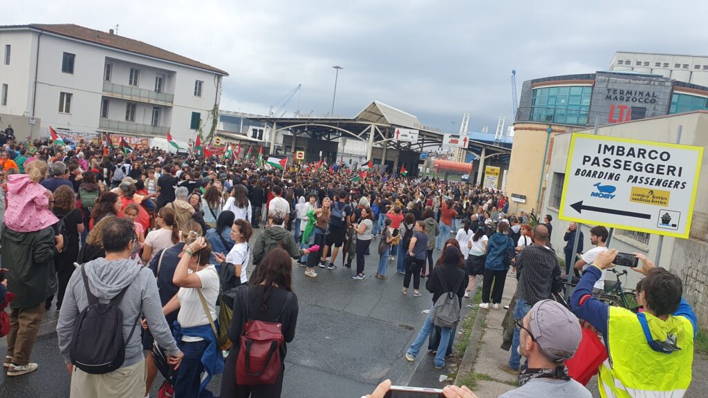 Dalle 6 di questa mattina è in corso al porto di Livorno un presidio indetto dal Gruppo Autonomo Portuali. Così si erano espressi negli scorsi giorni: “Ogni comitato di portuali che nasce, sono nuovi occhi e nuove braccia per individuare e denunciare i carichi di armi, per bloccarli, per mobilitare la cittadinanza a collaborare ai blocchi, per chiamare le istituzioni locali a fare rispettare la legge 185/90 e a farla rispettare noi direttamente se non lo fanno. Blocchiamo i nostri porti se i sionisti attaccano la Sumud Flotilla! Chiudiamo i nostri porti alla guerra degli imperialisti!”.