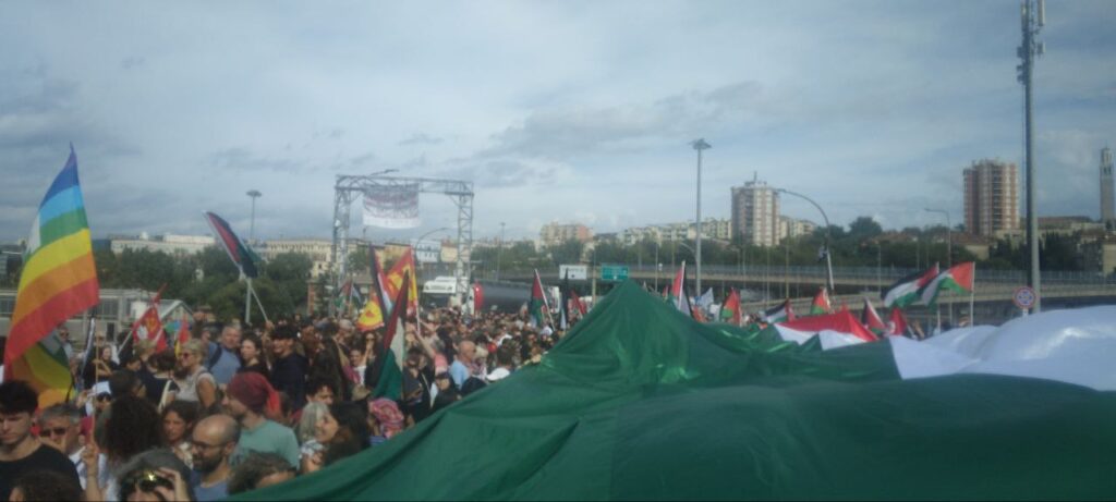 Il messaggio per il governo è chiaro: la complicità con Israele deve finire. Una giornata di sciopero generale che dimostra come la mobilitazione in solidarietà con il popolo palestinese sintetizzi molte istanze, dal rifiuto della guerra, alla situazione politico-economica del nostro paese. Una opposizione sociale al genocidio, al governo, al riarmo che si fa massa. Ci sarà tempo per fare valutazioni più ampie, ma intanto manteniamo alta l’attenzione sulla Global Sumud Flotilla, pronti a bloccare tutto… di nuovo!