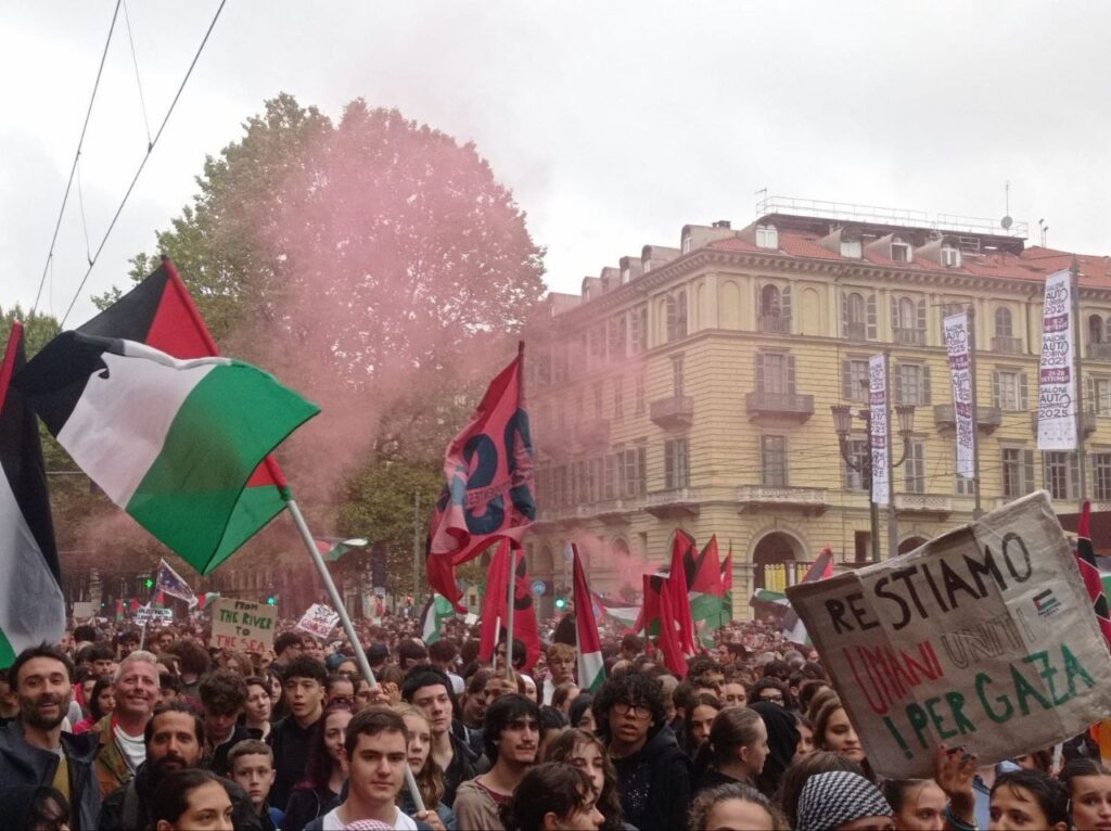 Il corteo degli studenti e delle studentesse universitarie partito dal Campus Einaudi, passa davanti a Palazzo Nuovo per poi raggiungere il concentramento. Anche gli studenti medi sono in cammino con una manifestazione molto numerosa da Piazza Arbarello.
