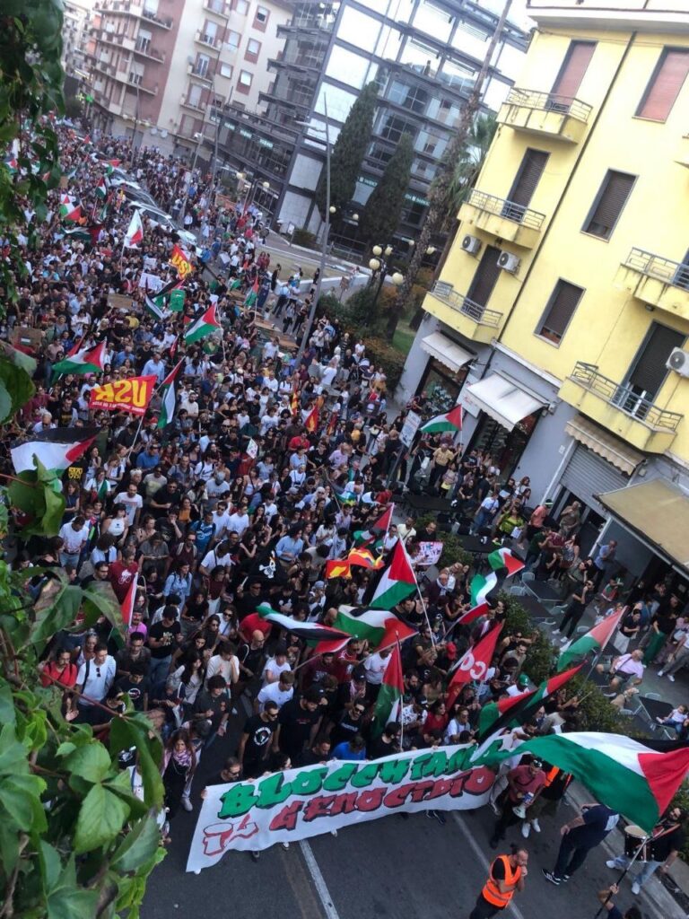 A Cosenza è in corso la manifestazione regionale per lo sciopero generale in solidarietà con il popolo palestinese. Bus dalle varie province calabresi.