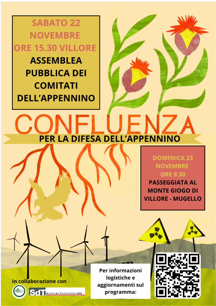 Pubblichiamo l’indizione per la due giorni del 22-23 novembre prossimi nel Mugello per la difesa dell’Appennino dalla speculazione energetica