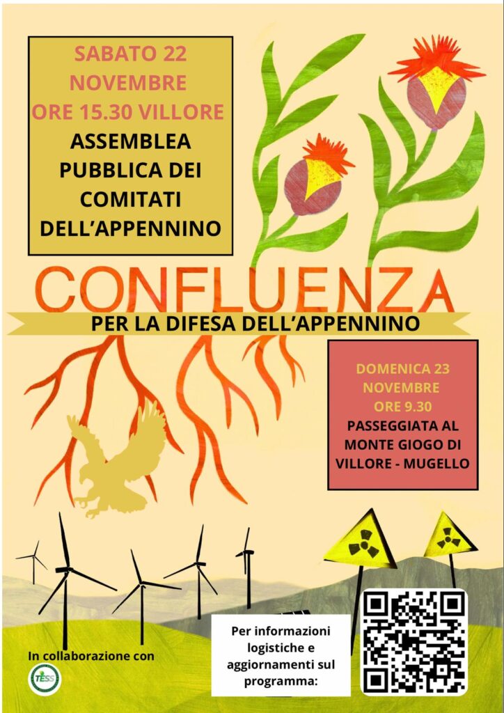 Abbiamo previsto un passaggio intermedio che si terrà il week end del 22 e 23 novembre nei pressi di Vicchio e Dicomano, dove verrà organizzata un’assemblea pubblica in modo da informare tutti i comitati della vasta area appenninica interessata delle iniziative previste. L’occasione è vista come un momento per approfondire i legami e le relazioni sul territorio, auspicando una partecipazione il più possibile eterogenea.