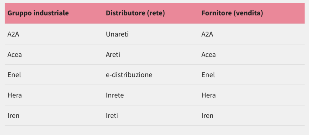 Le società di utility in Italia che gestiscono sia la distribuzione sia la fornitura