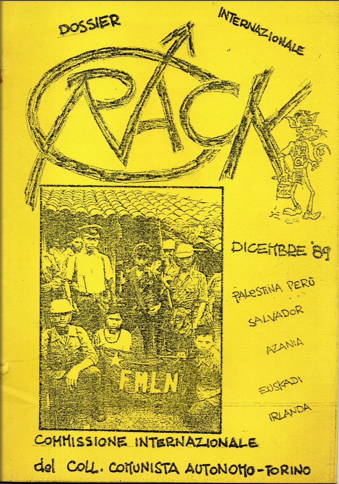 Dopo le occupazioni del 1987 da parte del Collettivo Spazi Metropolitani, con la fine del ciclo di mobilitazioni del movimento antinucleare in Piemonte, come Collettivo Comunista Autonomo si decide di dotarsi di un giornale cittadino “Crack per la rottura dell’ordine borghese”. Il semplice volantino non bastava piú, era necessario un giornale delle lotte autonome, un utile strumento di informazione per coprire in maniera efficace gli ambiti di intervento che iniziavamo a seguire con continuità.