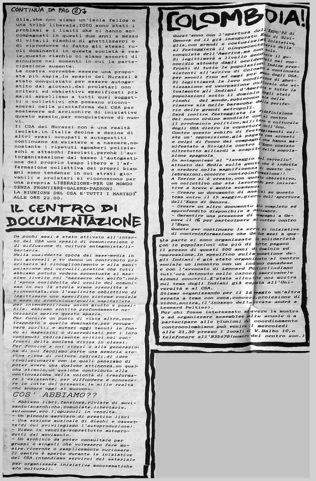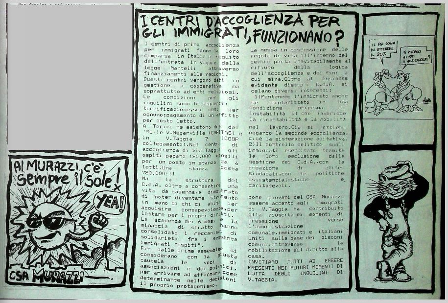 Sfoglia “Volantini CSA Murazzi – settembre 1989” e “Csa Murazzi – Volantini 1990“: