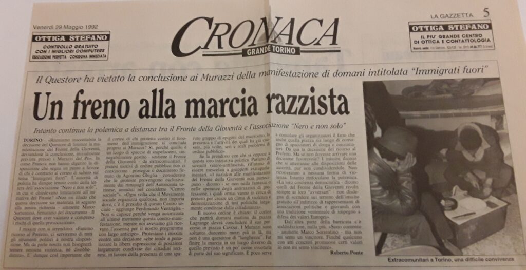 Un’iniziativa ad Asti per contestare Gremmo e la sua lega di razzisti dove venimmo anche caricati.