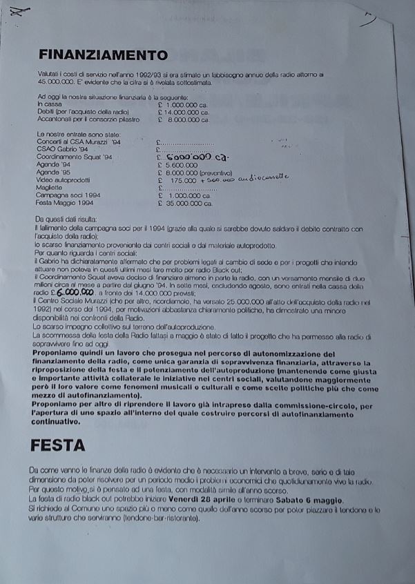 Sfoglia “Radio Black Out – Fascicolo dibattito interno 1993/1995” e “Incontro radio antagoniste – 19 febbraio 1995“: