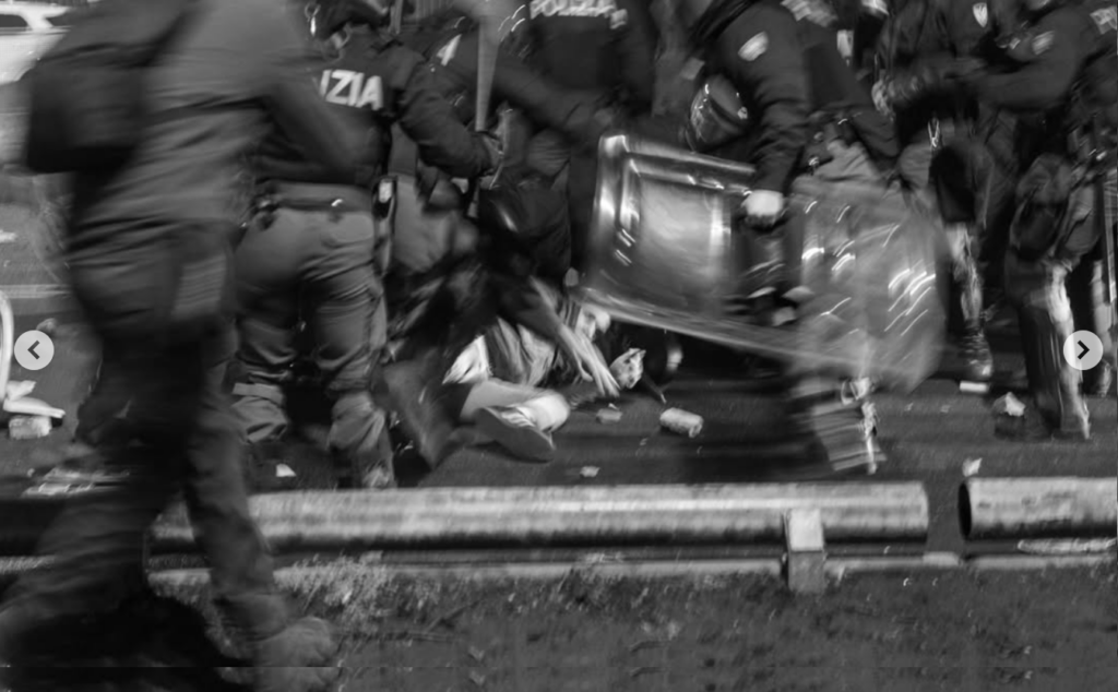 In particolare, nella manifestazione del 31 gennaio a Torino, ci sono alcuni episodi che hanno assunto grande rilevanza mediatica e che riguardano un anziano trascinato dai celerini sulla banchina degli autobus con il volto insanguinato e poi abbandonato; un fotoreporter che è stato brutalmente picchiato al grido di “basta, sto male sono un fotografo”. Ma queste sono quelle che hanno avuto la “fortuna” di essere riprese e fatte girare sui social grazie al lavoro di tanti canali indipendenti che insieme a noi cercano di fotografare la realtà delle cose, tante altre non hanno avuto la stessa “fortuna”. I messaggi e le testimonianze che alcune persone stanno svolgendo tramite i social sono una parte preziosa e ci parlano di lacrimogeni nei passeggini, lanci ad altezza uomo sul corteo che si sta avviando a conclusione, persone in fuga dall’aria irrespirabile accerchiate contro un muro, manganellate contro persone girate di spalle evidentemente senza motivo.