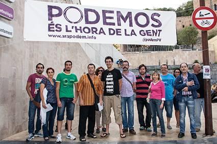 Il 17 gennaio del 2014 avviene la presentazione ufficiale di Podemos a seguito di un appello diffuso nei giorni precedenti e firmato da persone provenienti da diverse esperienze politiche. Pablo Iglesias, professore universitario di Madrid, conduttore della trasmissione La Tuerka e opinionista televisivo con un passato nelle fila della gioventù comunista spagnola, nel movimento no global e contro la guerra e naturalmente nel movimento #15m, annuncia la nascita di Podemos, un metodo partecipativo aperto a tutta la cittadinanza. L’obiettivo è chiaro: una lista di cittadinanza alle elezioni europee del 15 maggio per convertire l’indignazione cittadina in cambio politico. Tre sono le condizioni che vengono poste affinché il progetto abbia gambe: 50.000 firme a sostegno dell’iniziativa, un processo di unità con tutte le forze politiche e sociali che si sono battute contro l’austerità e in difesa dei diritti sociali, che sia la gente a decidere attraverso lo strumento di primarie aperte per la formazione della lista in cui tutti possano candidarsi e votare. Nei giorni seguenti è un crescendo di attenzioni alla nuova creatura politica, sorgono in tutta la Spagna circoli di sostegno e il programma elettorale con cui presentarsi alle elezioni europee viene scritto da migliaia di persone attraverso un programma di scrittura collaborativa e viene discusso in tutti i circoli che a loro volta presentano cambiamenti, modifiche, emendamenti al testo. Il tutto viene validato tramite votazione web aperta a tutti i cittadini. Alle forme tradizionali di organizzazione politica con la nascita dei circoli viene abbinato fin da subito l’utilizzo di tutti gli strumenti che il web 2.0 è in grado di fornire. Una volta definito il programma è la volta delle primarie per scegliere i 54 candidati che comporranno la lista (ogni sesso potrà avere una rappresentanza massima del 60%). Si candidano 150 cittadine e cittadini e votano alla consultazione web (svoltasi con piattaforma certificata esterna all’organizzazione) 33.165 persone. Le votazioni sono due. La prima per scegliere chi debba essere la testa di lista e ogni cittadino può esprimere un solo voto, la seconda per scegliere i candidati e ogni cittadino può esprimere tre preferenze. Per votare bisogna iscriversi al portale web podemos.info. La campagna elettorale viene giocata nelle piazze, in televisione e sul web facendo vivere tutta la radicalità del proprio programma e lanciando pesantissime invettive contro la casta, la corruzione e le banche responsabili della crisi. Il programma ha i contenuti classici e tradizionali della sinistra radicale, ma Podemos non si definisce di sinistra. Le categorie sinistra e destra hanno totalmente perso il loro significato originario, in Spagna la sinistra è l’odiatissimo Psoe responsabile delle politiche di austerity. Podemos sostituisce al binomio destra/sinistra quello democrazia/oligarchia o quello basso/alto. Podemos è uno strumento di partecipazione affinché chi sta in basso, i cittadini comuni, possano organizzarsi e determinare un cambio di società contro chi sta in alto, in primis politici e banchieri. Il simbolo con cui decideranno di correre alle elezioni europee è la faccia del leader Pablo Iglesias con sotto scritto Podemos e la scelta giustificata col fatto che Iglesias fosse molto più conosciuto dai cittadini spagnoli del progetto politico. Non mancheranno forti discussioni fra la base per questa scelta. Il 25 Maggio è il giorno del voto e Podemos si afferma come quarta forza politica spagnola ricevendo 1.245.948 voti. L’affluenza alle urne è stata solo del 43,81% in linea col dato europeo e Podemos ottiene il 7,98% dei voti validi eleggendo 5 eurodeputati. Davanti a loro solo Izquierda Unida (con cui non si è raggiunto l’accordo per la presentazione di una lista comune a causa del rifiuto a svolgere le elezioni primarie) col 10,03%, il Partito Socialista col 23,01% e il Partito Popolare col 26,09%. Podemos decide di aderire al gruppo parlamentare del Gue, che candidava alla Presidenza della Commissione Europea Alexis Tsipras, il Presidente di Syriza. Lo stesso gruppo in cui siederanno i tre europarlamentari italiani eletti dalla lista L’altra Europa con Tsipras.