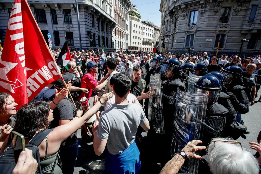 Un percorso che ha visto nel 2023 un corteo separato, nel 2024 una grande contestazione in piazza Duomo, conclusasi con cariche della celere sotto gli occhi dell’ANPI e di Beppe Sala (25 Aprile 2024: appunti di lotta dalla piazza di Milano) fino ad arrivare al 2025, quando lo spezzone sociale e palestinese ha scelto di prendersi la testa del corteo: ad aprire, insieme all’ANPI, furono quindi le bandiere palestinesi, lasciando indietro istituzioni e partiti (25 Aprile 2025: Appunti di lotta dalla piazza Milano) isolando le bandiere sioniste e ucraine come un corpo separato ed estraneo al corteo.