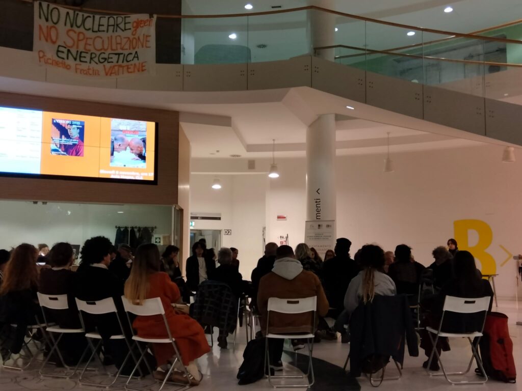 L’unità di misura dei tempi di pericolosità. c’è chi dice migliaia e chi milioni di anni, la possiamo fissare nell’ordine dei 100.000 anni: quant’è durata la storia umana al confronto? Questo significa che, se assecondassimo Confindustria, Ansaldo, Pichetto Fratin, lasceremmo un’eredità per tempi che sono enormemente più grandi della durata della storia umana che abbiamo alle spalle. Il posto “sicuro” non è ancora stato trovato perché ovunque si provi a individuare scatta la rivolta sociale, problema che il nuovo decreto bypasserà aggirando l’ostacolo del territorio, dato che le decisioni saranno centralizzate, anche in merito all’individuazione del sito per il deposito. Al momento l’unica soluzione, per quanto riguarda le scorie che devono rientrare dall’estero, è che dovranno tornare nei siti da dove sono partite; tornando all’esempio di Trino quindi verranno depositate – nell’attesa di un luogo idoneo – in una zona inondabile, con la faglia a 1 metro sotto la superficie del suolo, dunque un sito che fa acqua da tutte le parti.
