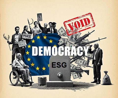 Nel febbraio 2022, una settimana prima che cominciasse l’“operazione speciale” russa, una comunicazione della Commissione al parlamento europeo chiedeva con urgenza maggiori fondi al settore della difesa per via delle crescenti tensioni ai confini ucraini, aggiungendo poi: «È altrettanto importante garantire che altre politiche orizzontali, quali le iniziative in materia di finanza sostenibile, rimangano coerenti con gli sforzi dell’Unione europea volti a facilitare un accesso sufficiente dell’industria europea della difesa ai finanziamenti e agli investimenti».