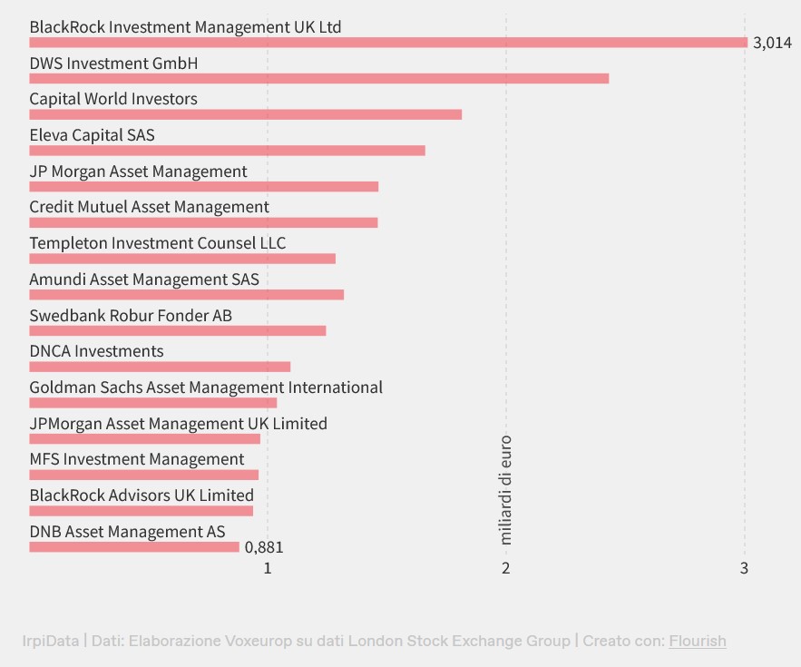 Nel 2025 sono stati 25 i fondi “verdi” che hanno investito complessivamente 23 milioni di euro nella società israeliana. Tra questi compaiono un fondo “ESG Ottimizzato” offerto dalla VP Bank del Liechtenstein, venduto anche in Germania, o il “BGF Climate Transition” offerto da BlackRock Investment Management UK, venduto in diversi paesi Ue.
