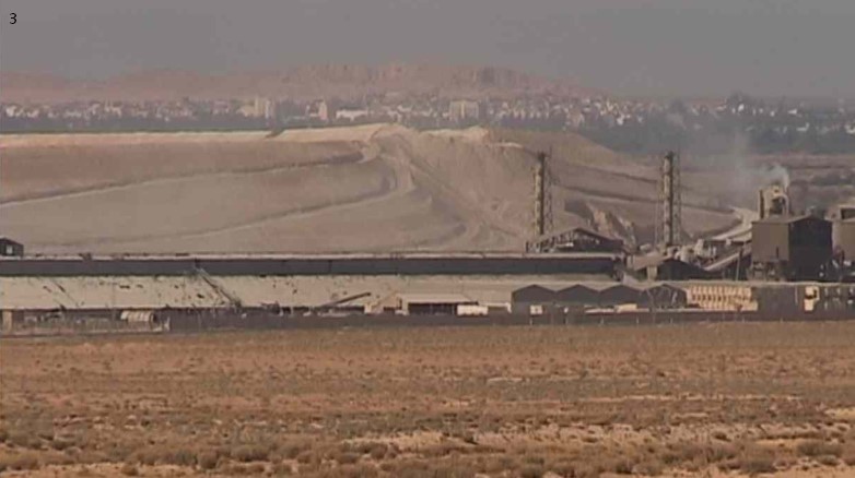 – Foto 3: Accanto al Gruppo chimico tunisino (GCT), la “montagna” di fosfogesso di Mdhilla, nel bacino minerario di Gafsa, di fronte alle oasi e al deserto, è un disastro ambientale ignorato.