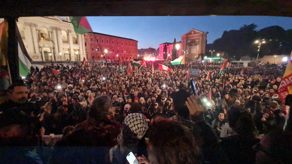 A Roma centomila le persone hanno percorso le vie del centro per la manifestazione nazionale in solidarietà con la Palestina e contro la finanziaria del governo Meloni. In testa al corteo Francesca Albanese e Greta Thunberg dietro lo striscione “Stop accordi con Israele. Sanzioni ed embargo ora”. La manifestazione è stata organizzata dal Movimento degli studenti palestinesi e dall’USB, e vede l’adesione di Potere al Popolo, Unione democratica Arabo Palestinese, Arci Roma, movimenti per la casa, studenti di Osa e Cambiare Rotta, oltre che numerose altre realtà sociali arrivate da tutta Italia.