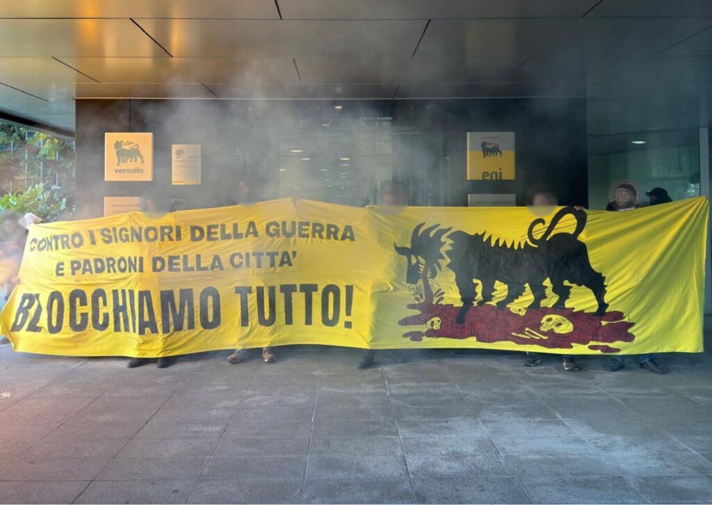 La giornata di sciopero generale del 28 ottobre ha visto manifestazioni e cortei diffusi in tutta Italia. Da Trento a Palermo decine di città si sono mobilitate contro la finanziaria di guerra e per la fine del genocidio del popolo palestinese. A Milano fin dalla mattina hanno avuto luogo due blocchi “contro i signori della guerra e i padroni della città” uno al centro direzionale ENI di San Donato Milanese (qui il comunicato) ed uno all’hub di Pioltello centro della “logistica di guerra”.