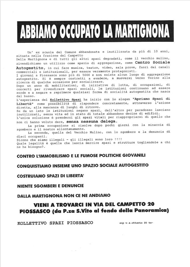 Sfoglia “Arsenio Lupin – Giornale autoprodotto dal Kollettivo Spazi di Piossasco” e “Rassegna stampa 1993 – 1994“: