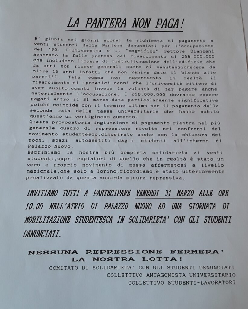 Sfoglia “Pantera – 1990” e “La Pantera dopo la fine delle occupazioni“: