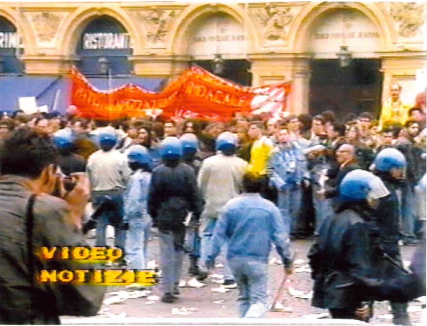 Il 25 settembre una piazza arrabbiata ha accolto il comizio di Sergio Cofferati: protetto da scudi di plastica, ha iniziato con mezz’ora di anticipo a parlare quando molti non erano ancora arrivati. Non è riuscito a strappare nemmeno un applauso, sul palco erano tutti impegnati a schivare ortaggi, bulloni e uova con gli scudi e gli ombrelli. Al termine del veloce comizio Cofferati ha invitato a isolare i provocatori. Lo stallo creato dalla fuga dei sindacalisti veniva rotto dalla musica del furgoncino del Csa Murazzi che si dirigeva verso il palco. A questo punto partiva una dura carica di Ps e Cc che picchiavano tutto quello che gli capitava a tiro, bucata le gomme del furgone e danneggiata l’impianto di amplificazione.